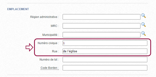 In the "Emplacement" option, type the civic number and street name. Click on "Lancer la recherche" at the bottom of that window: